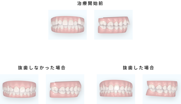 その際には、抜歯した場合と抜歯をしなかった場合といった複数のシミュレーションプランをご提示させていただき、それぞれのプランにおけるメリット・デメリットをご説明しております。